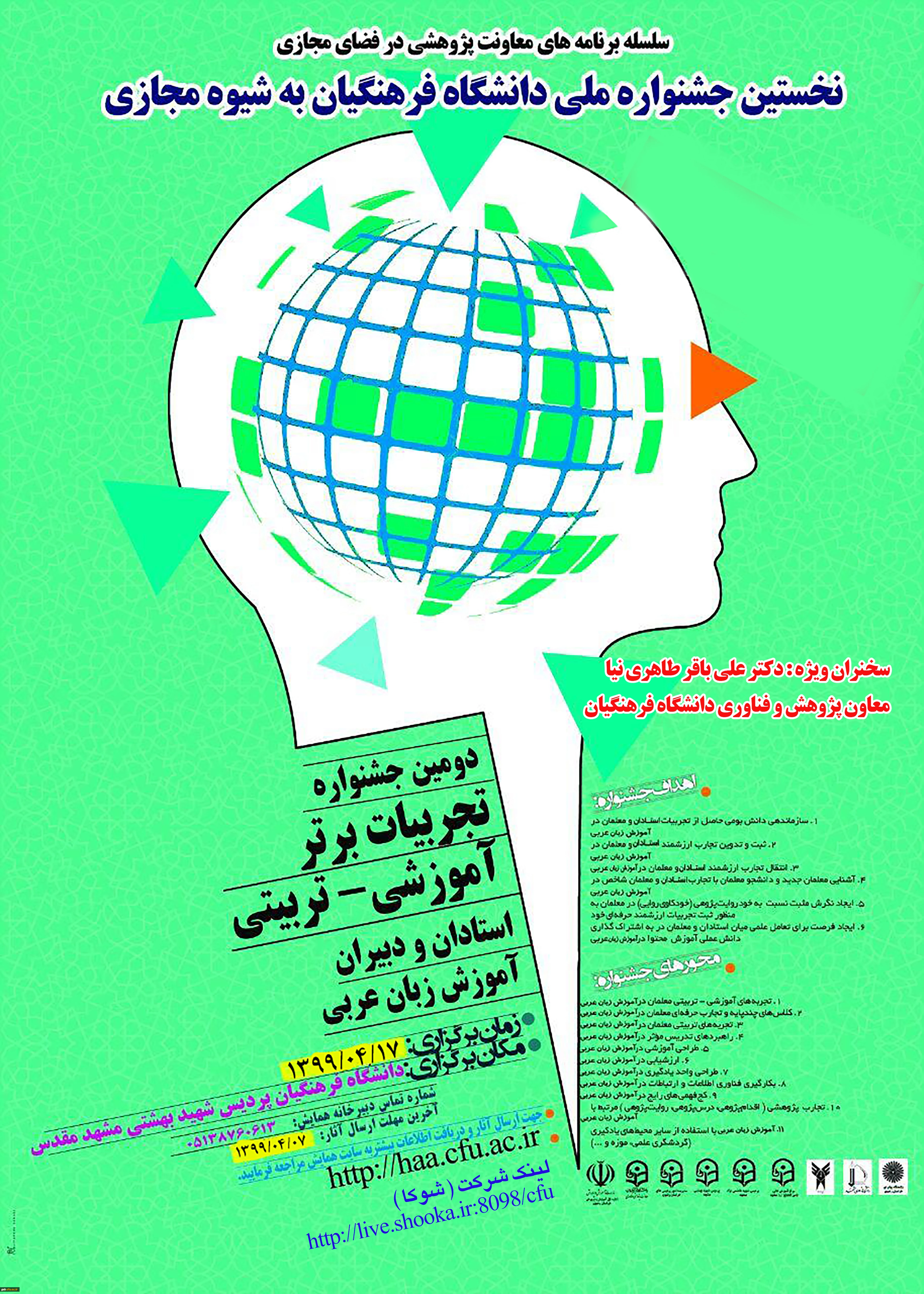 برگزاری « نخستین جشنوارة کشوری تجربیات برتر، آموزشی – تربیتی استادان و دبیران ، آموزش زبان عربی ، به شیوة مجازی »