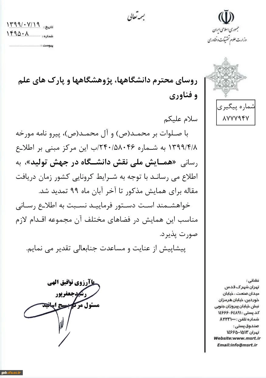 تمدید فراخوان " همایش ملی نقش دانشگاه در جهش تولید"،